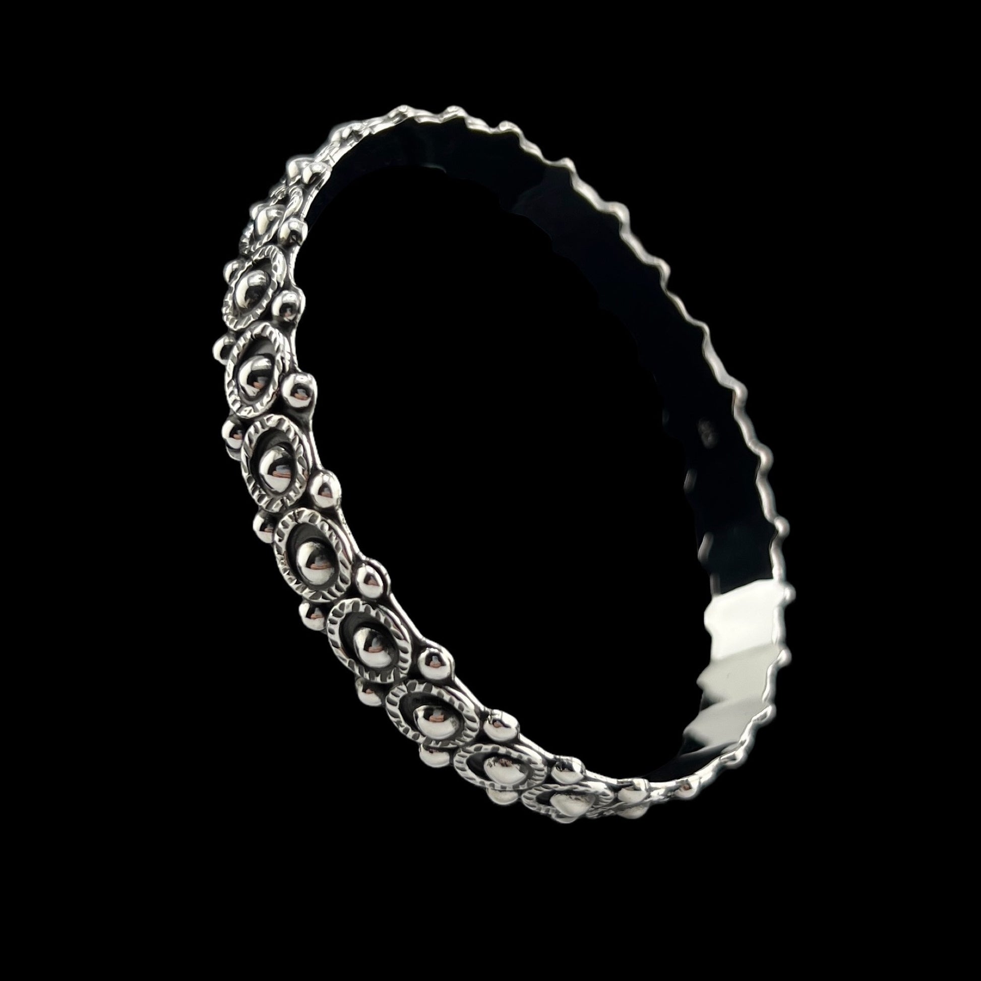 Sterling Silver .925 Bangle Bracelet 65mmx8mm Bolitas Flower