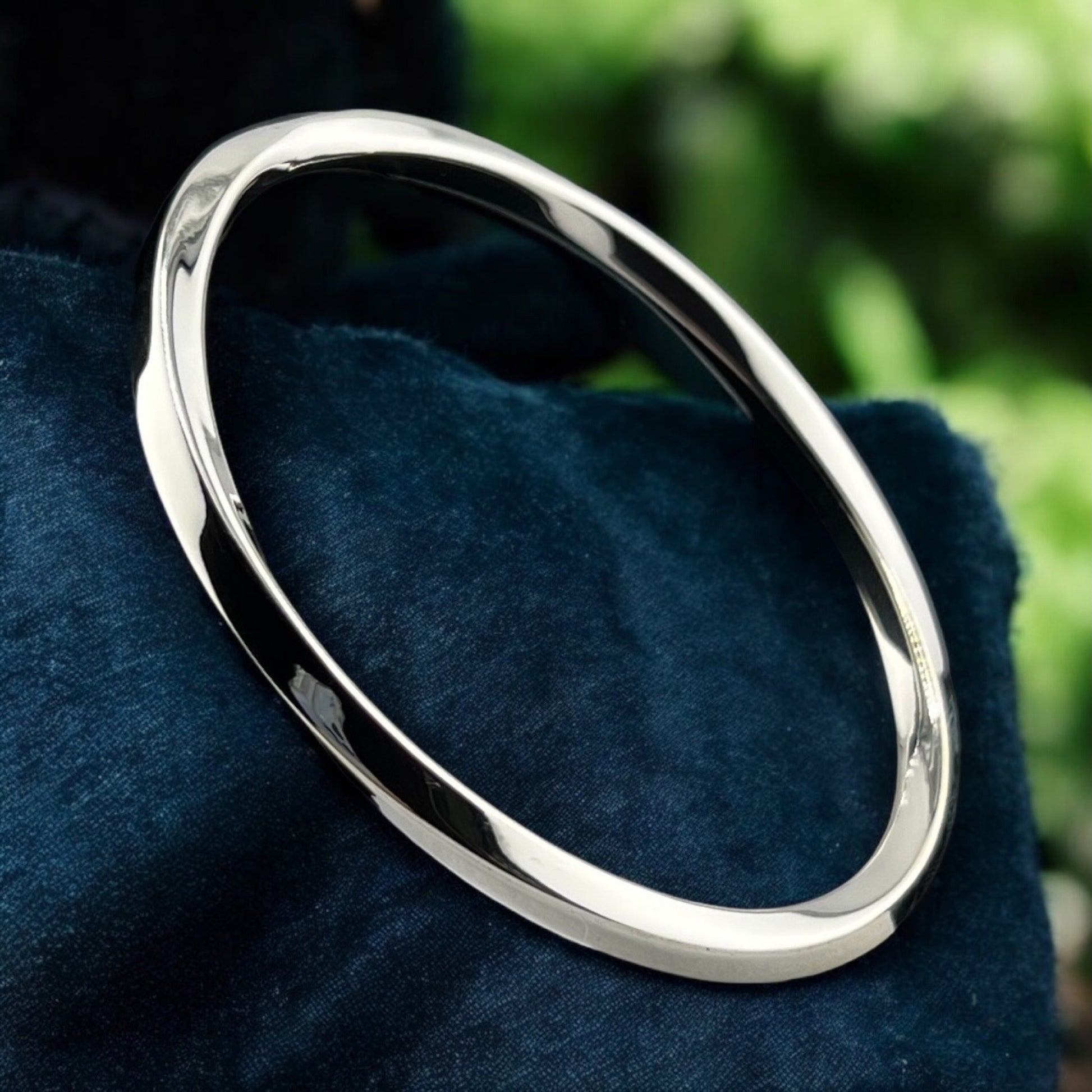 Sterling Silver .925 Bangle Bracelet 73mmx3mm Undulating Smooth