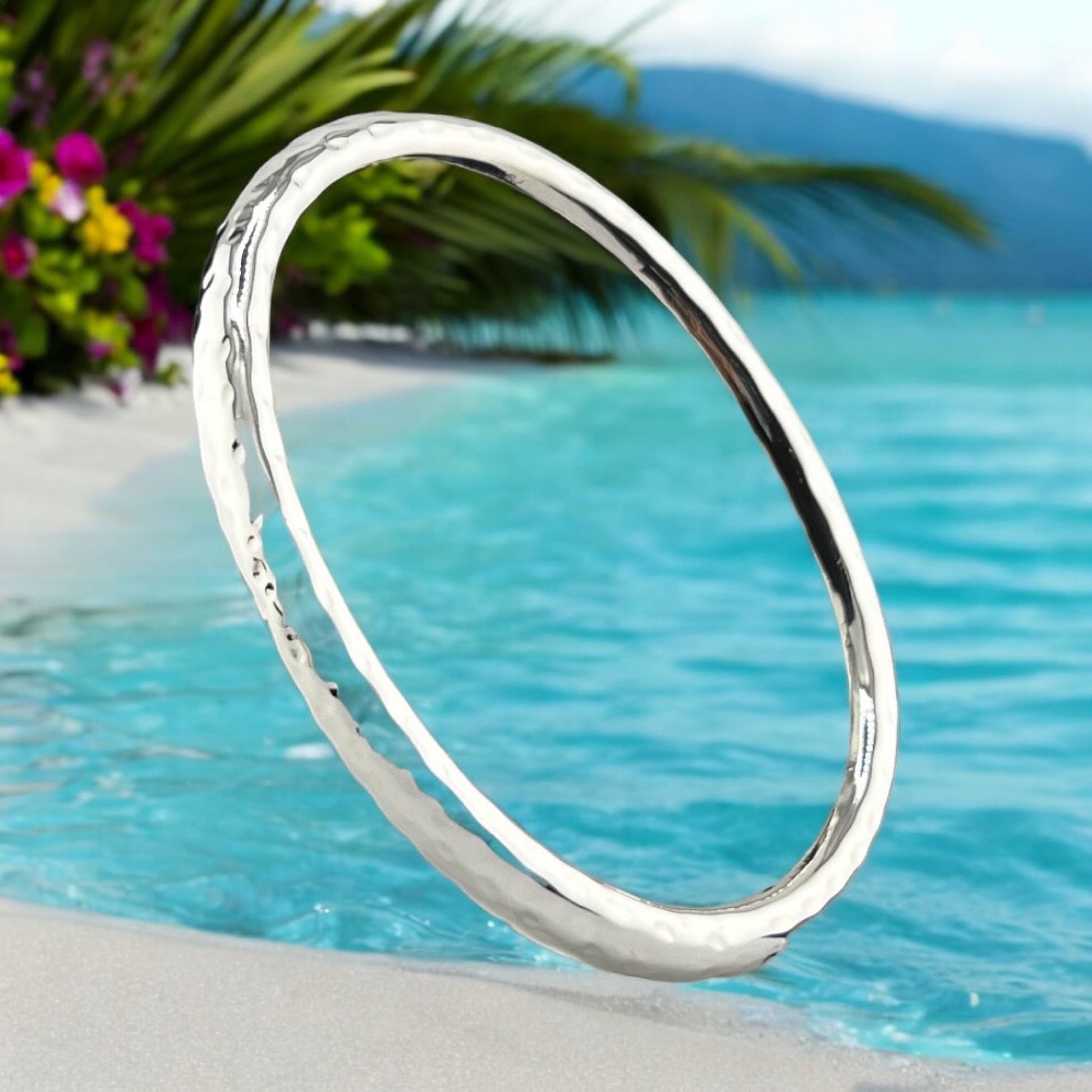 Sterling Silver .925 Bangle Bracelet 70mmx5mm Oval Hammered