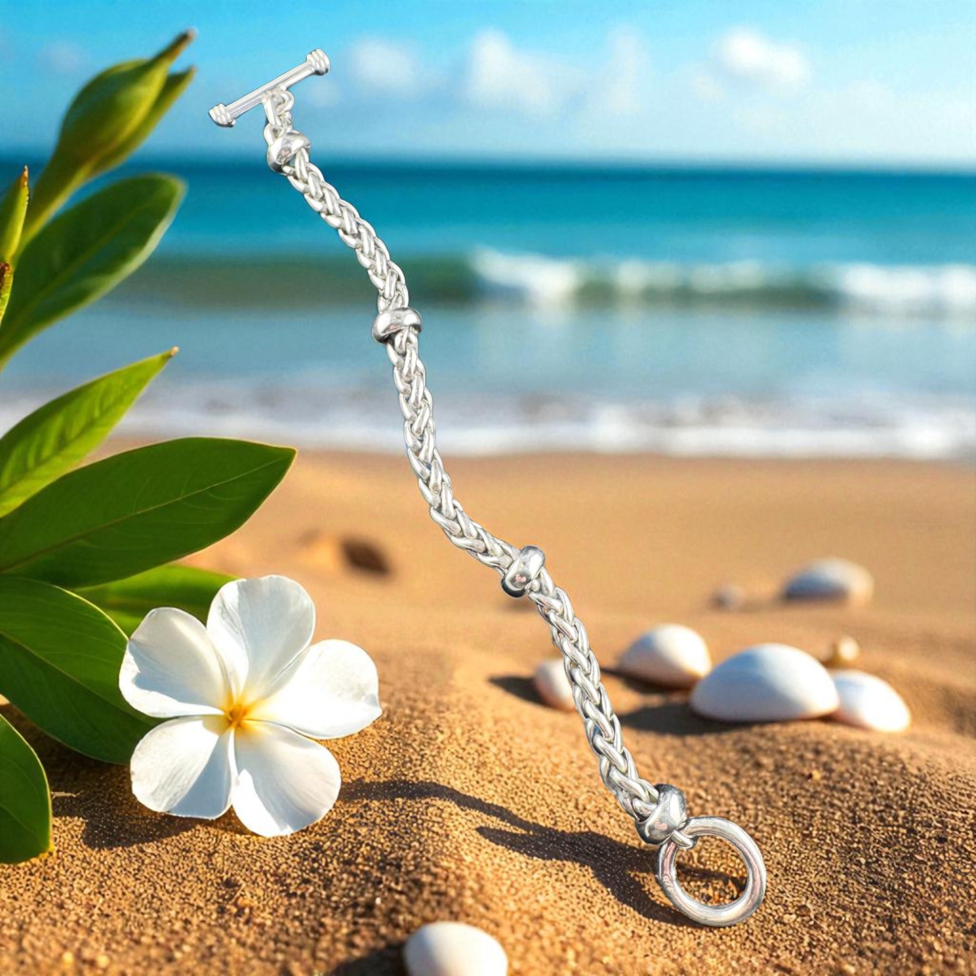 The detail of this Byzantine Chain w/4 Beads Bracelet adds a touch of sophistication. Classic T bar fastener. Approx. 7.5in., Byzantine Chain w/4 Beads Bracelet 7.5in, Artisan crafted solid .925 sterling silver. MEM2-B001
