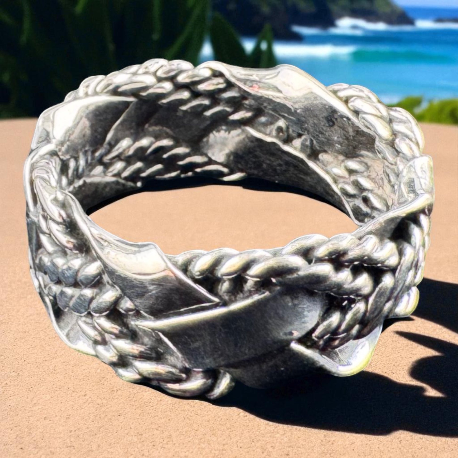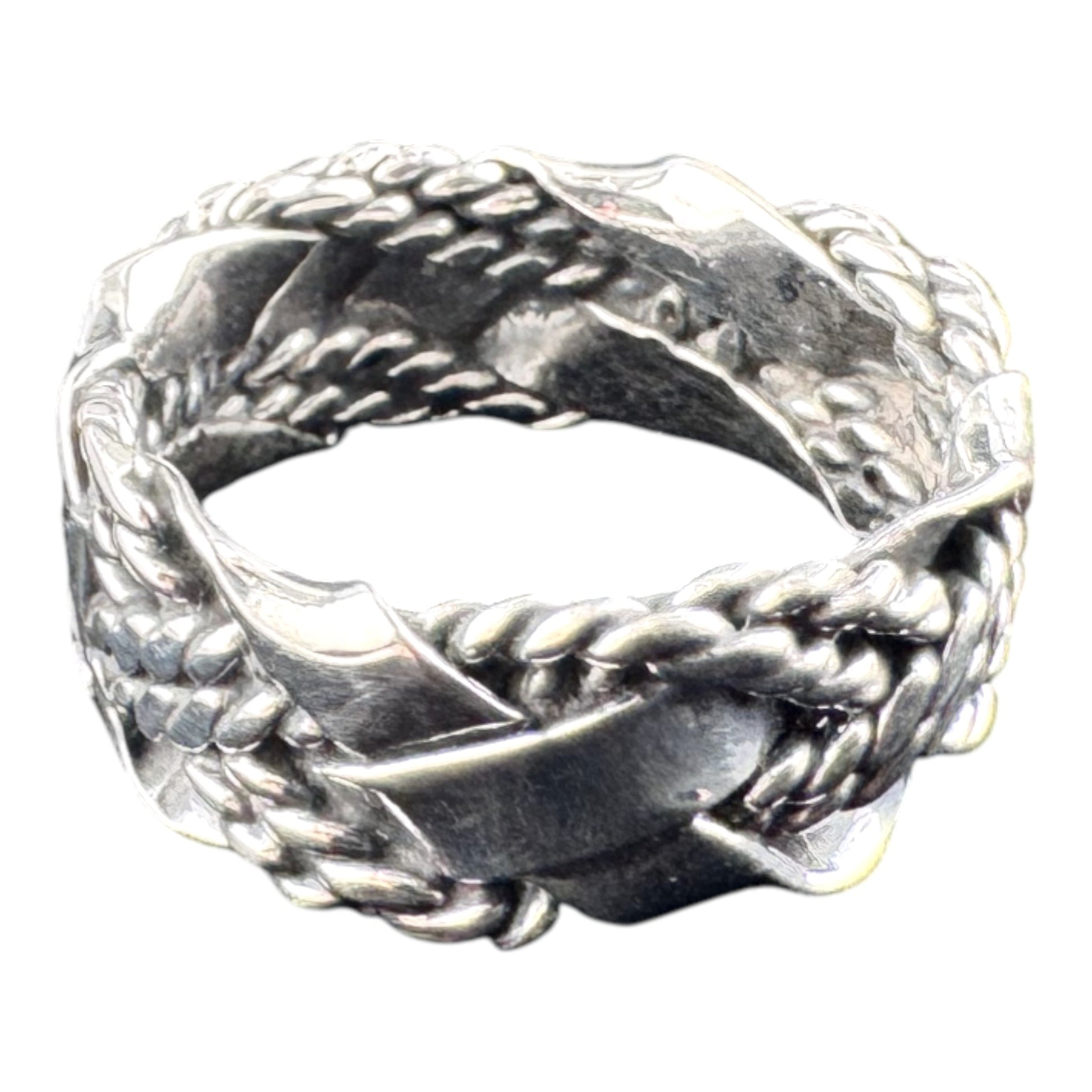 A mixture of cable twists and woven strips on this Twisted Woven Ring create a unique band., Twisted Woven Ring, Artisan crafted solid .925 sterling silver. MEM2-R014