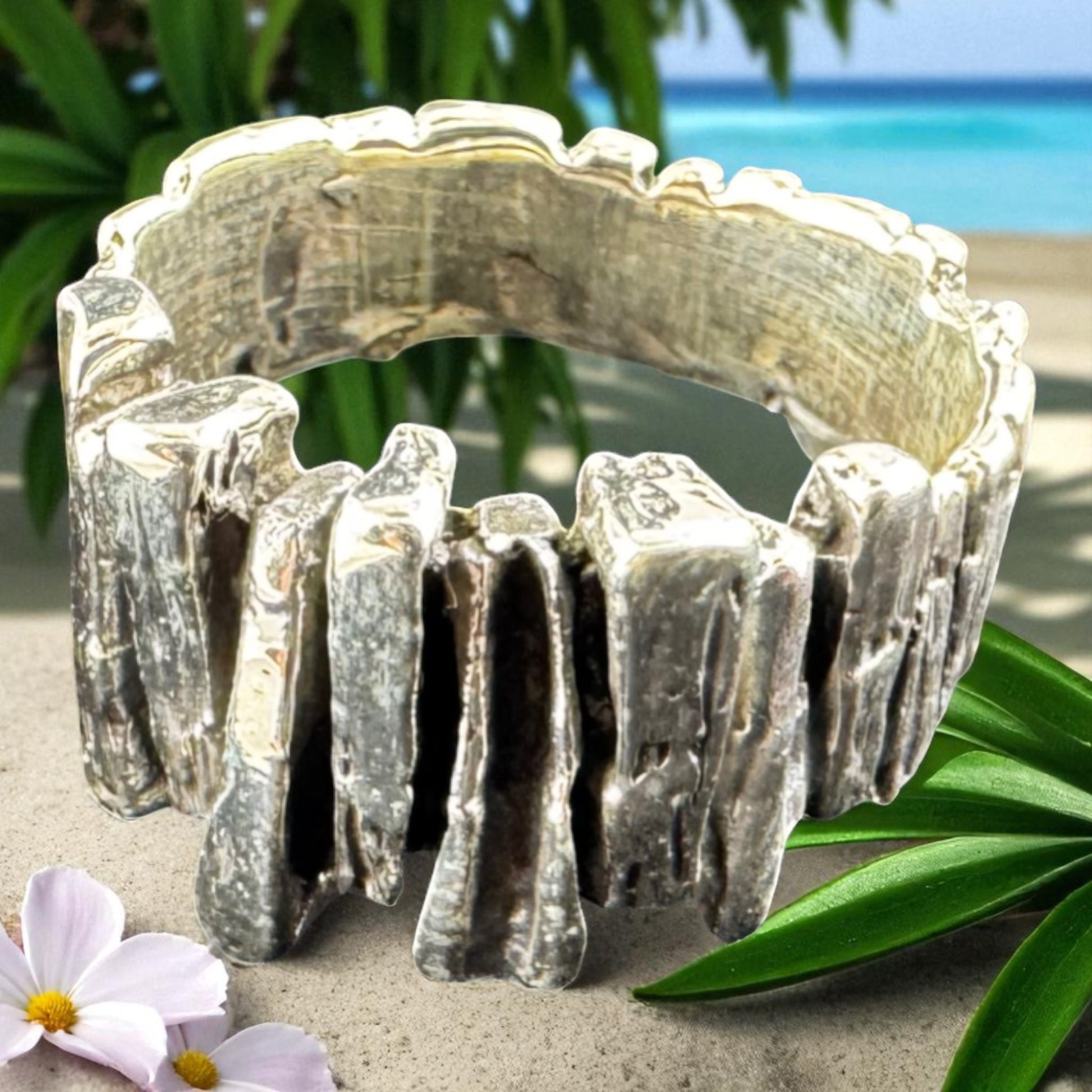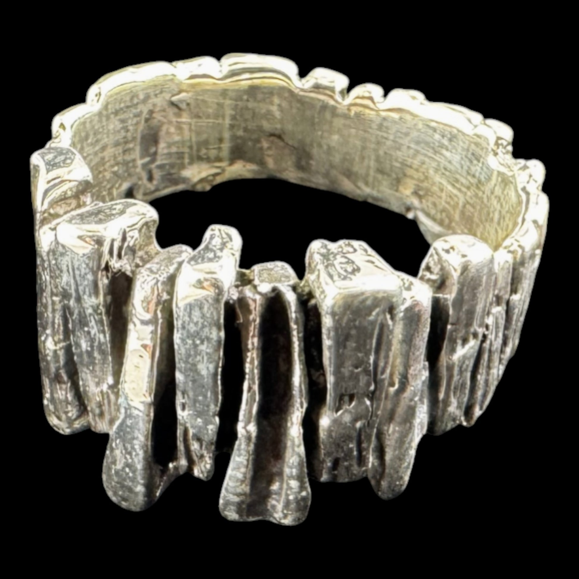 Unusual textured wide band ring, Organic Rustic Ring, with rectangular elements. Approx.12mm wide, Organic Rustic Ring, Artisan crafted solid .925 sterling silver. MEM2-R021