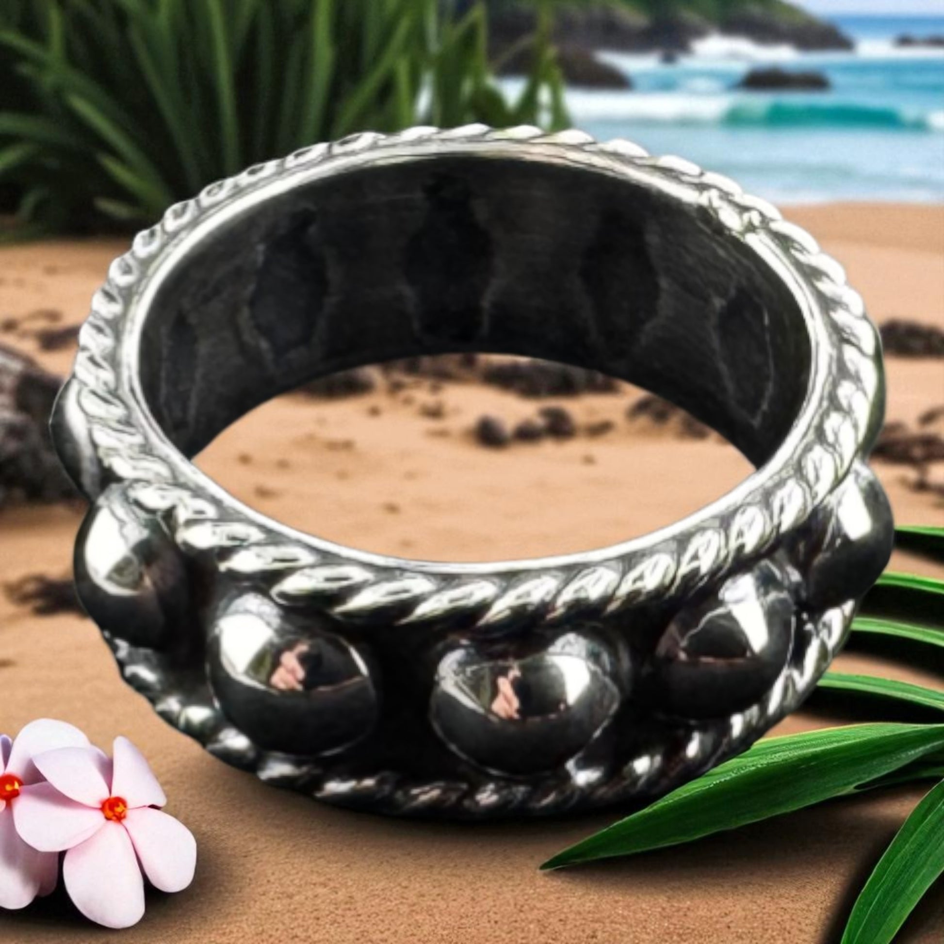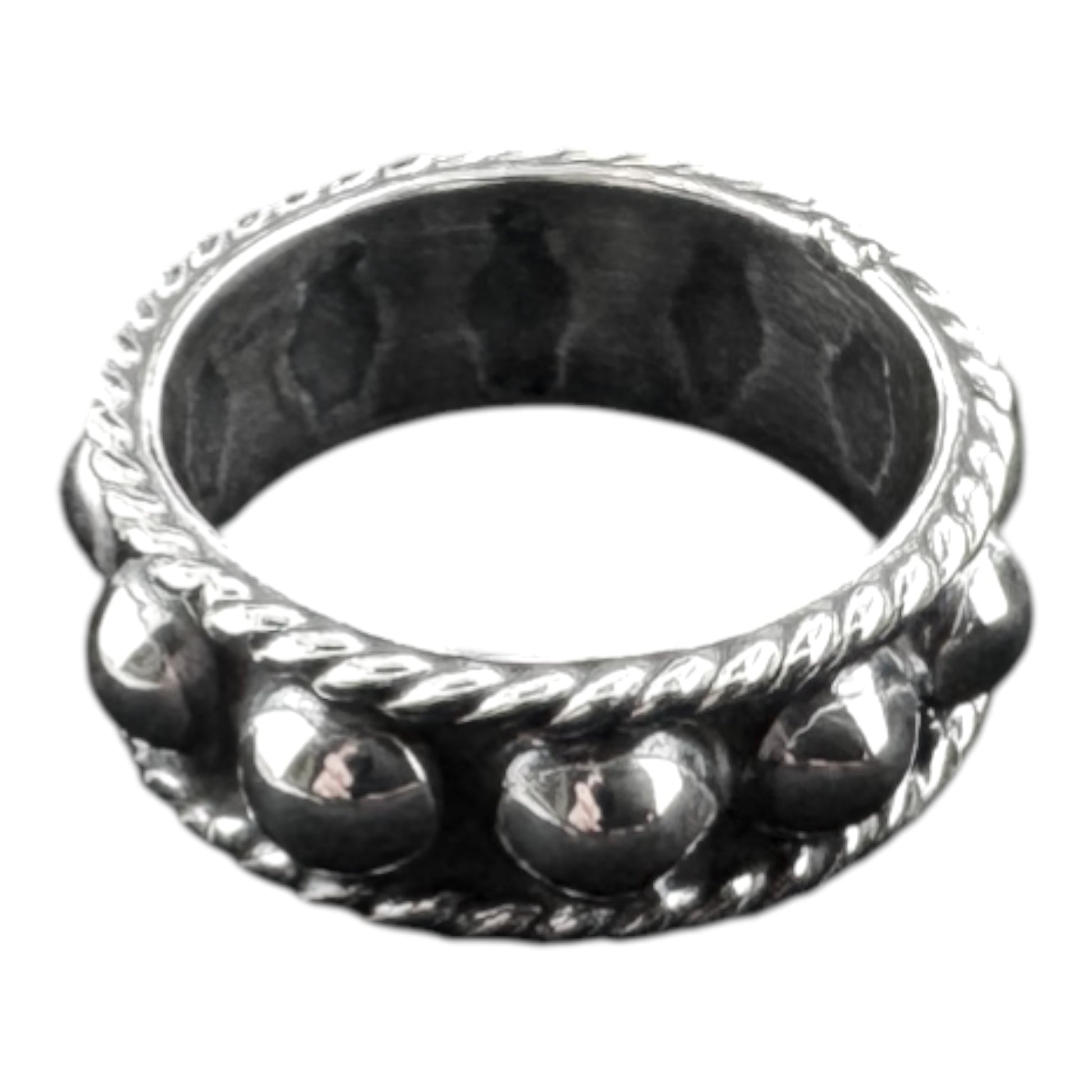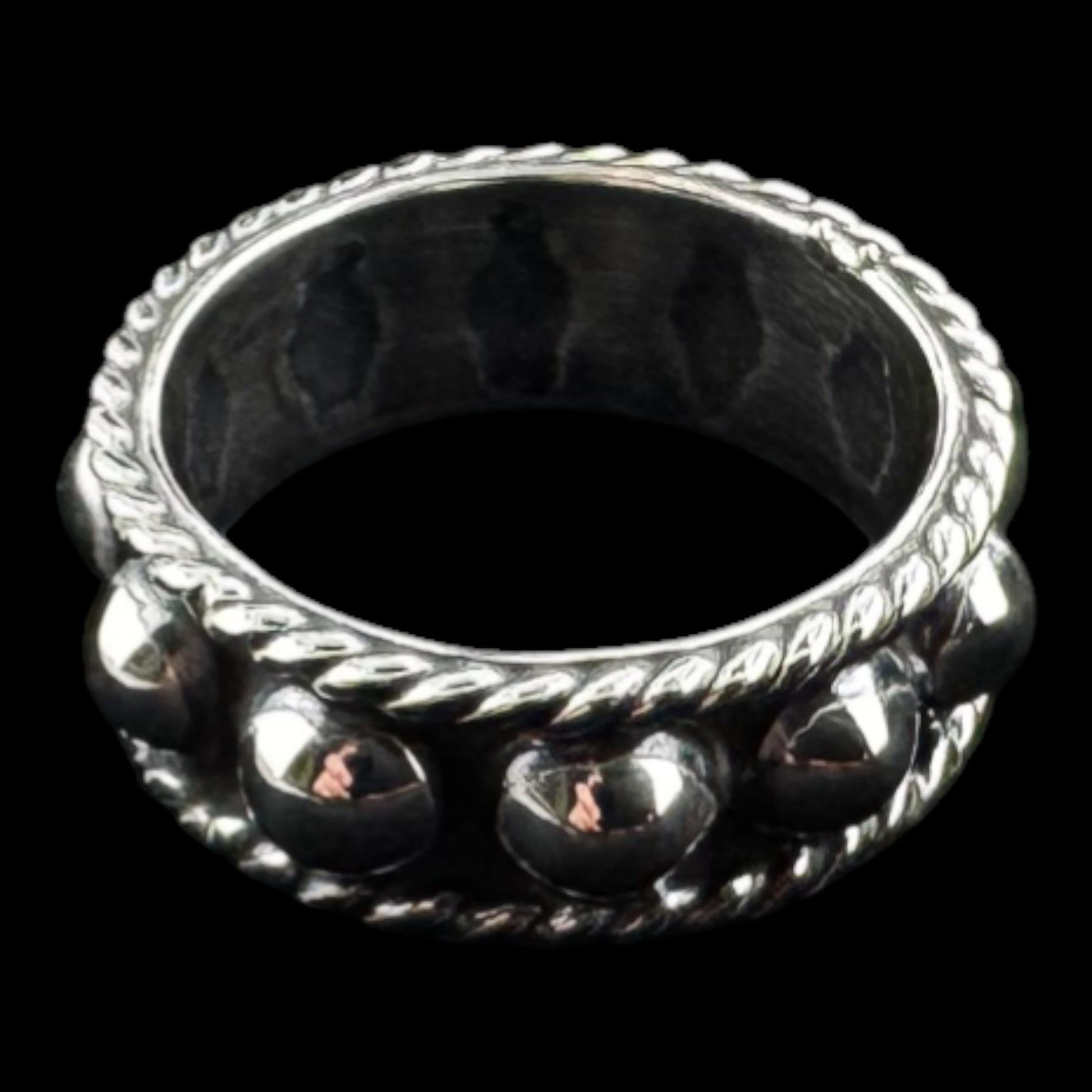 Classic design band ring with twisted rope edge & half raised spheres all around, Spheres Ring, approx. 8mm wide., Spheres Ring 8mm, Artisan crafted solid .925 sterling silver. MEM2-R029