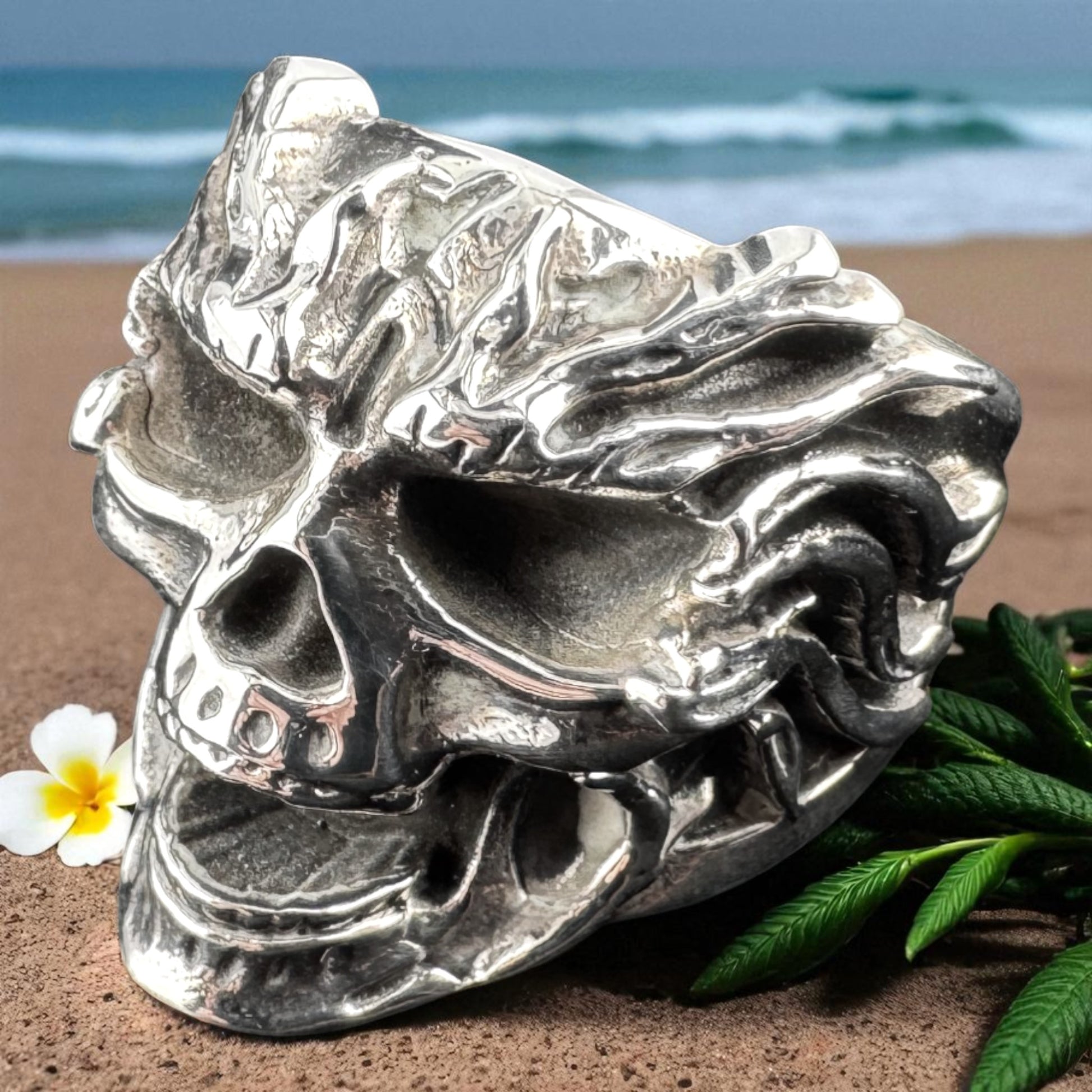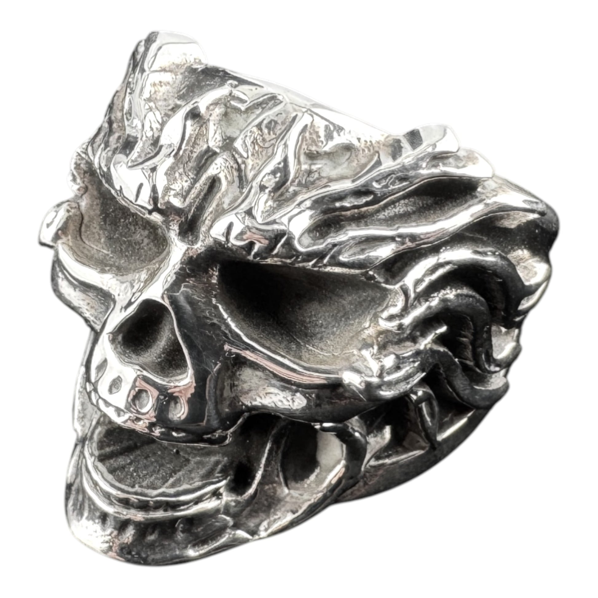 Detailed with textures, this Sculpted Skull Ring, meticulously handcrafted., Sculpted Skull Ring, Artisan crafted solid .925 sterling silver. MEM2-R032