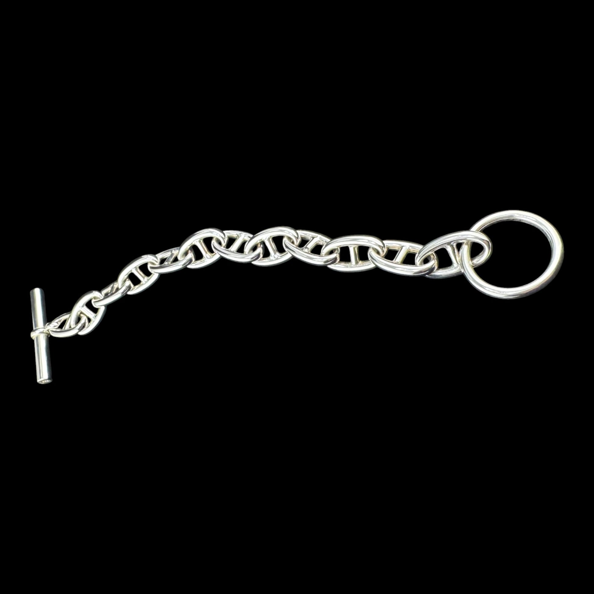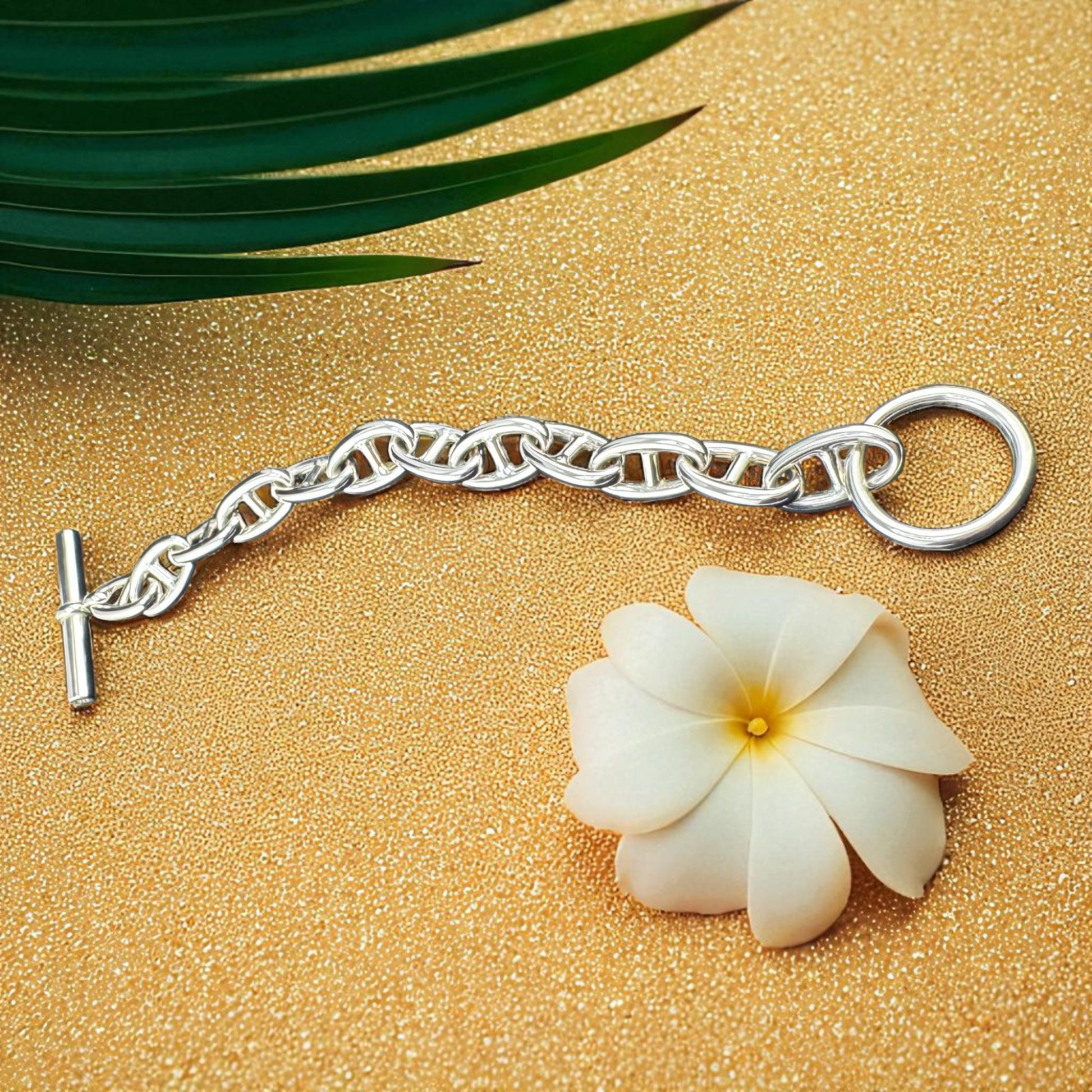 Adorn your wrist with nautical flair with this Mariner Chain Bracelet. This captivating bracelet features a stylish anchor link chain, secured with a classic T-bar clasp, offering a chic and versatile look. Handcrafted from .925 sterling silver, this bracelet boasts meticulous hand-finished details, making it a fashionable and enduring accessory. Approx. 8 inch; 20cm., Mariner Chain Bracelet 8in, MVA-B001