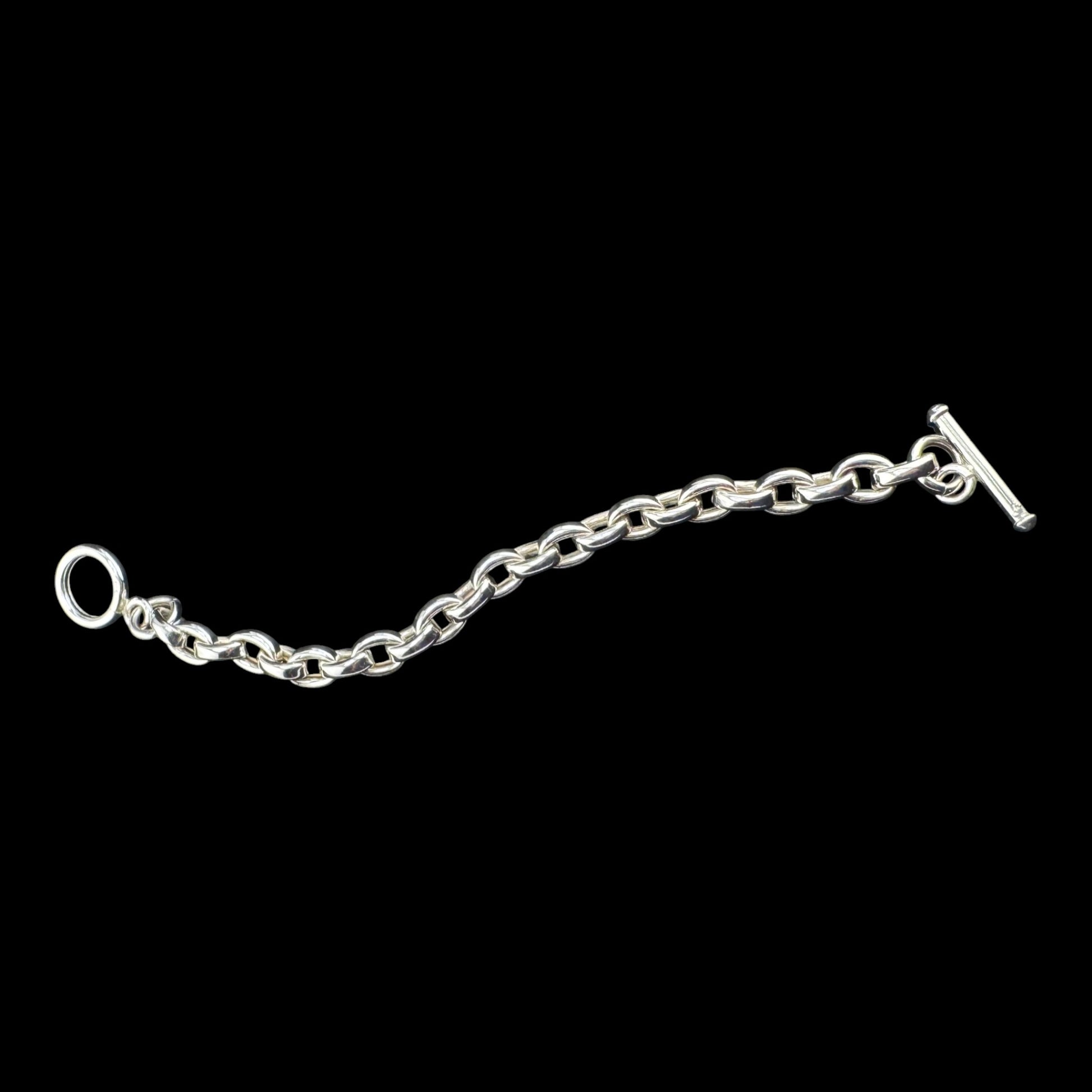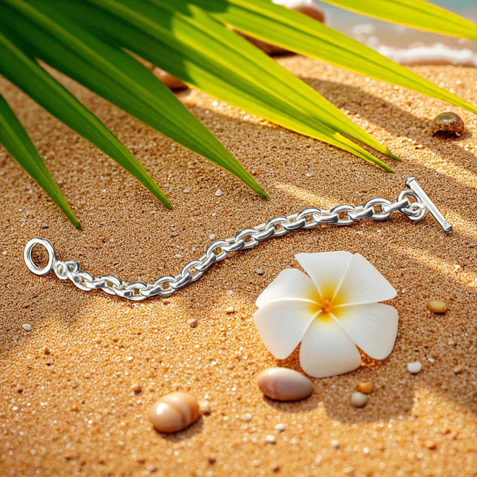 Subtly elegant, this Oval Link Chain Bracelet features delicate, small, oval links, secured with a classic T-bar clasp, offering a refined and versatile look. Artisan crafted from solid .925 sterling silver, with gleaming hand finished details, a charming and enduring accessory. Approx. 8 inch; 20cm., Oval Link Chain Bracelet, MVA-B006