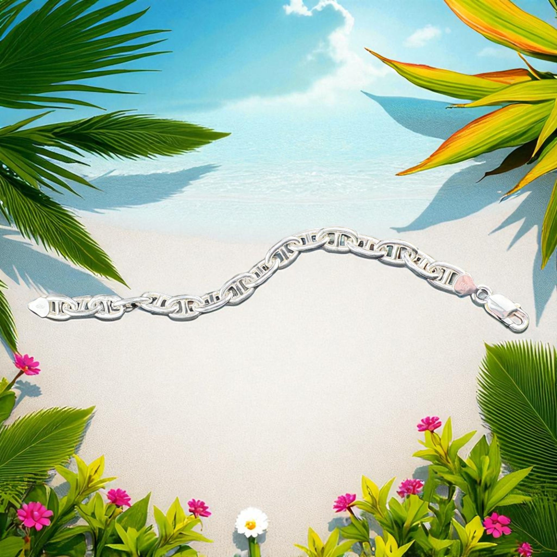 Adorn your wrist with nautical flair with our exquisite Mariner Chain Bracelet. This captivating bracelet features a stylish mariner link chain, secured with a classic lobster clasp, offering a chic and versatile look. Artisan crafted from solid .925 sterling silver, this bracelet boasts meticulous hand-finished details, making it a fashionable and enduring accessory. Approx. 7.5 inch; 19cm., Mariner Link Chain Bracelet 7.5in, MVA-B011