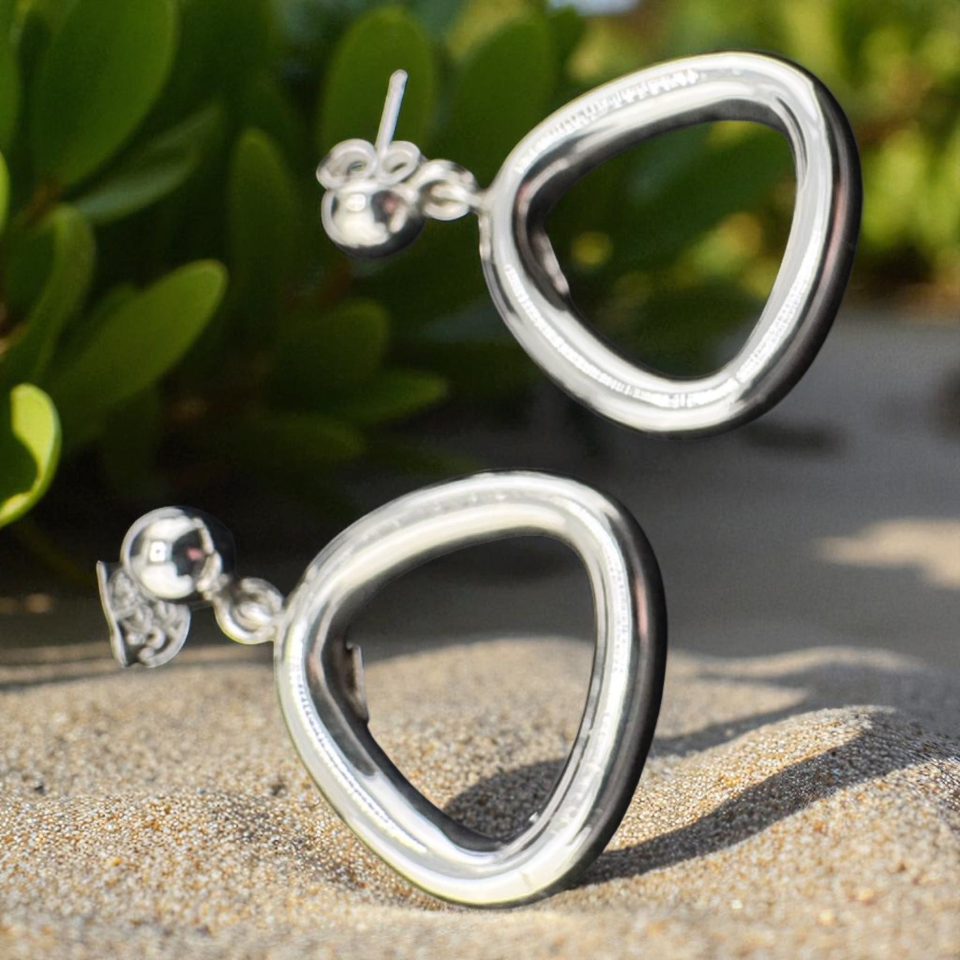 Define your style with our exquisite Triangular Stud Earrings. These captivating earrings feature a sleek, modern triangular design, offering a contemporary edge to any look. Handcrafted from solid .925 sterling silver, the gleaming hand finished details make them a chic and versatile accessory. Approx. 23mm x 33mm., Triangular Stud Earrings, MVA-E003