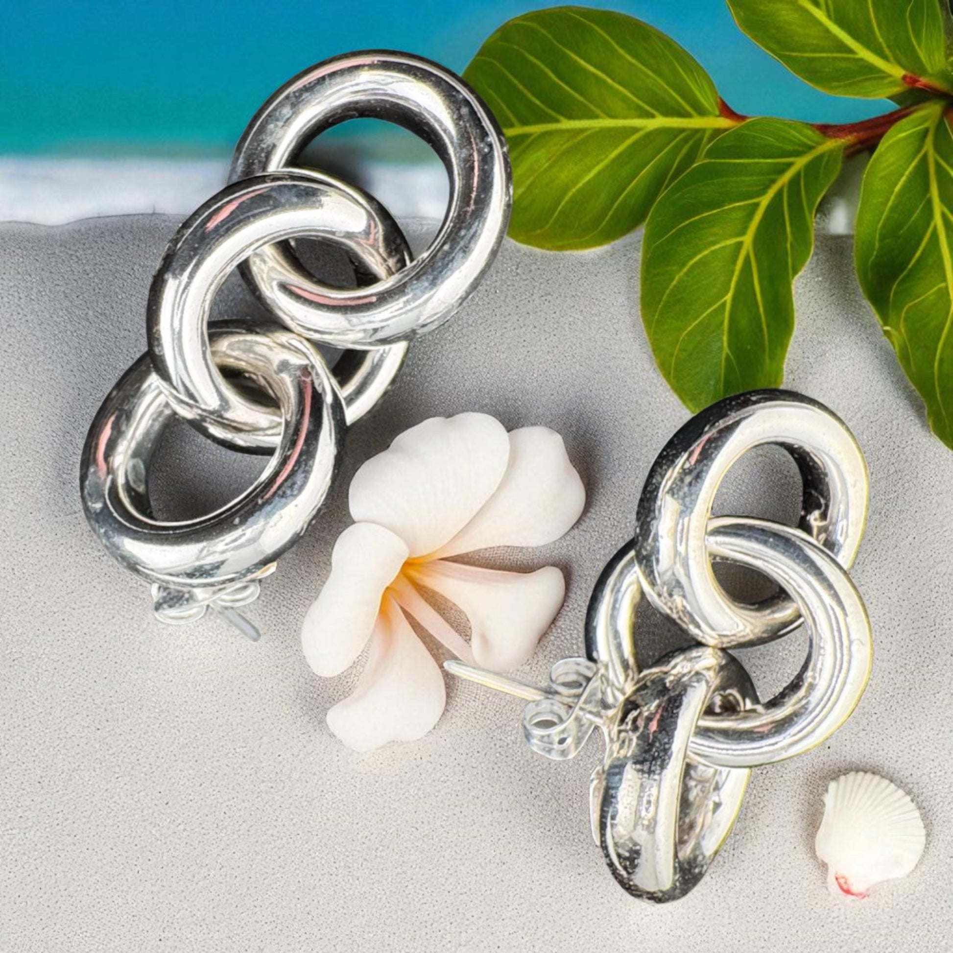 Make a subtle statement with these Triple Interlocking Round Stud Earrings. Featuring three beautifully crafted round links, elegantly intertwined to create a sophisticated and layered design, handcrafted from solid .925 sterling silver, these earrings glow with hand finished details, making them a chic and versatile accessory. Approx. 16mm x 35mm., Triple Interlocking Stud Earrings, MVA-E005