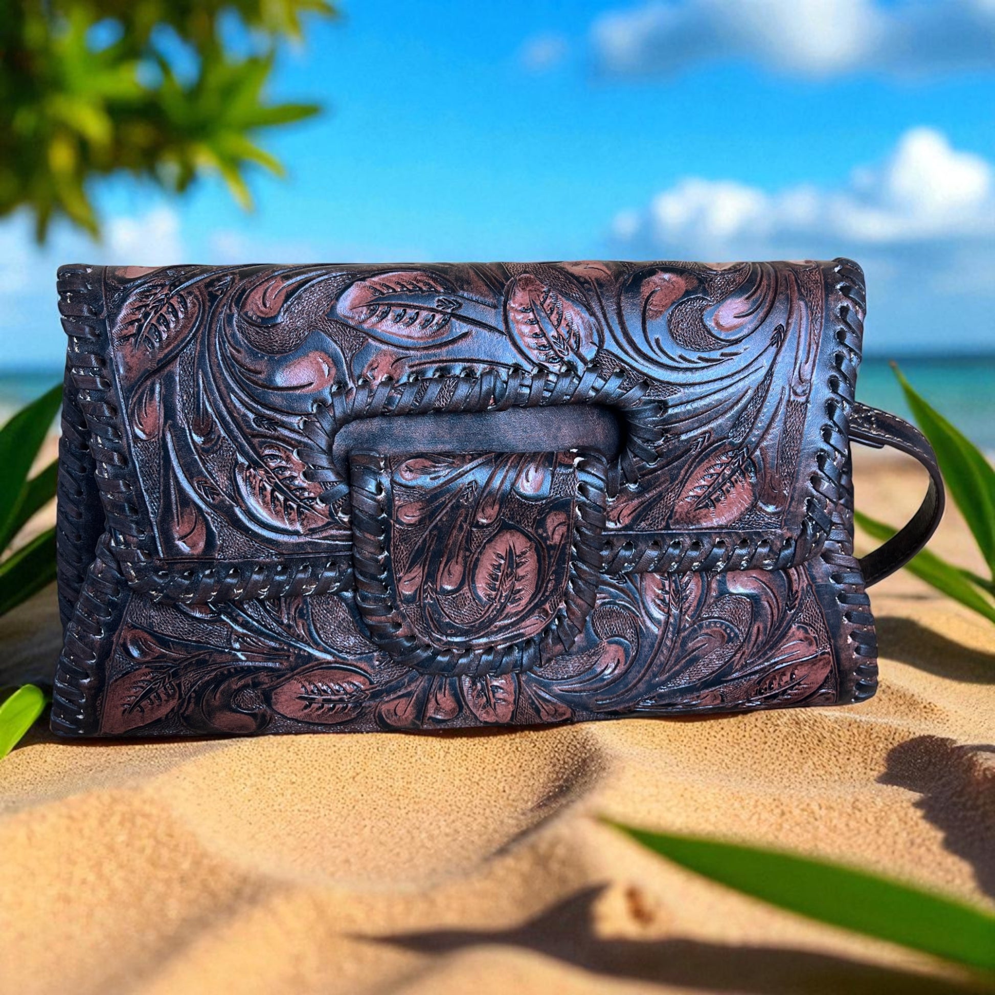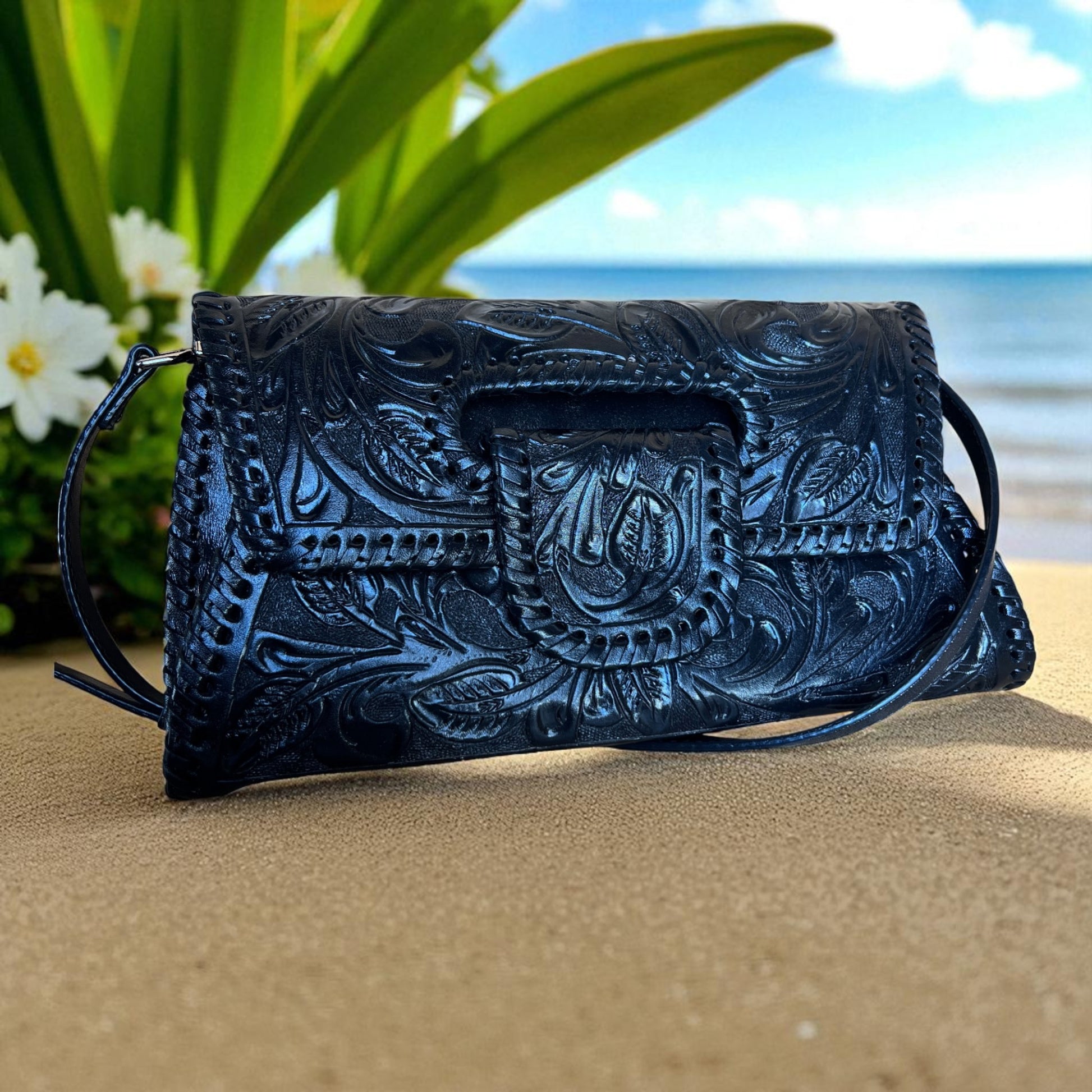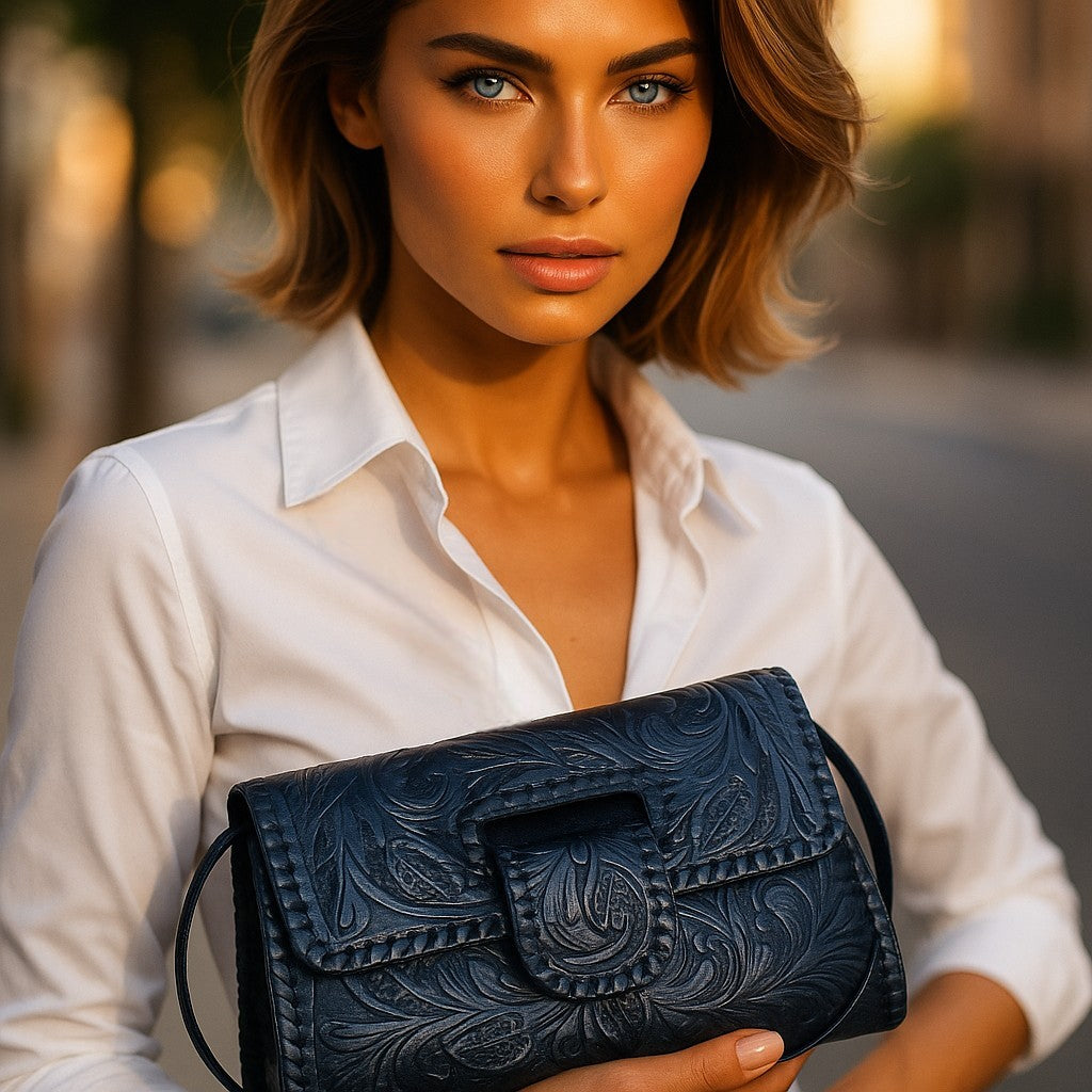 Handcrafted leather purse with bound edge & shoulder strap., Margarita Mini 12" x 7", Artisan crafted from Mexico. YEO1-008