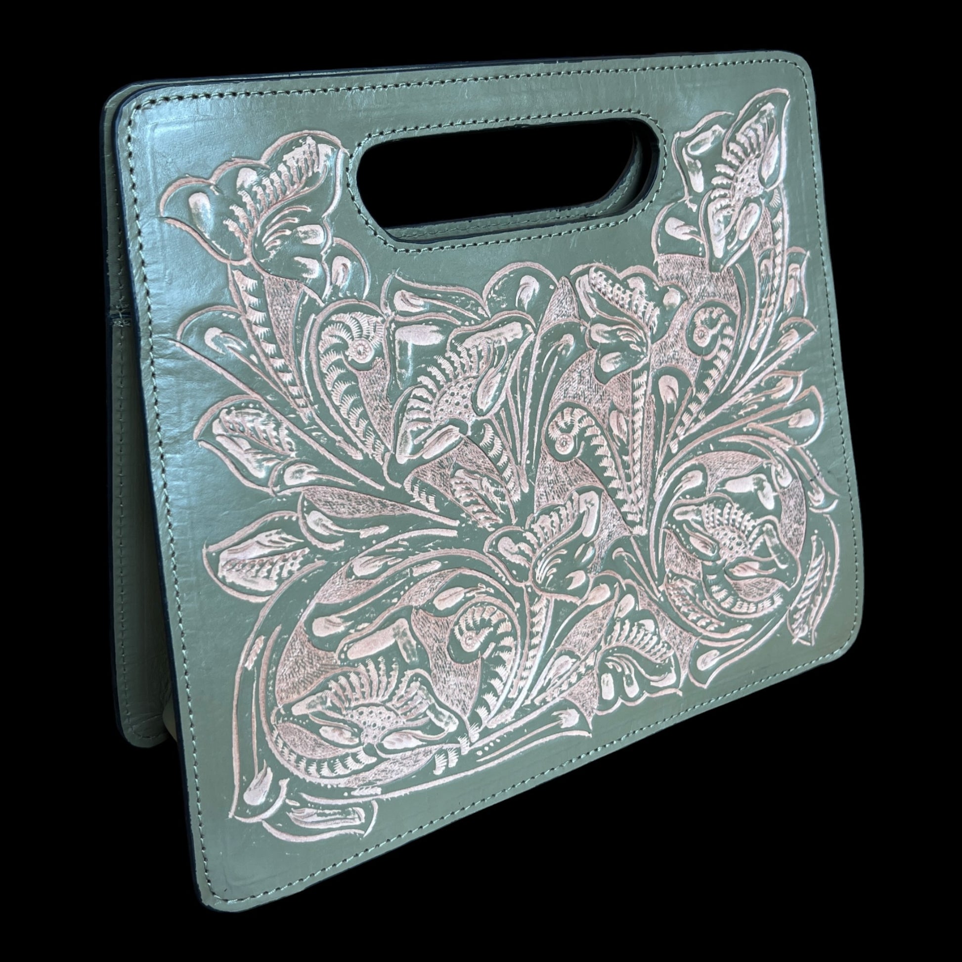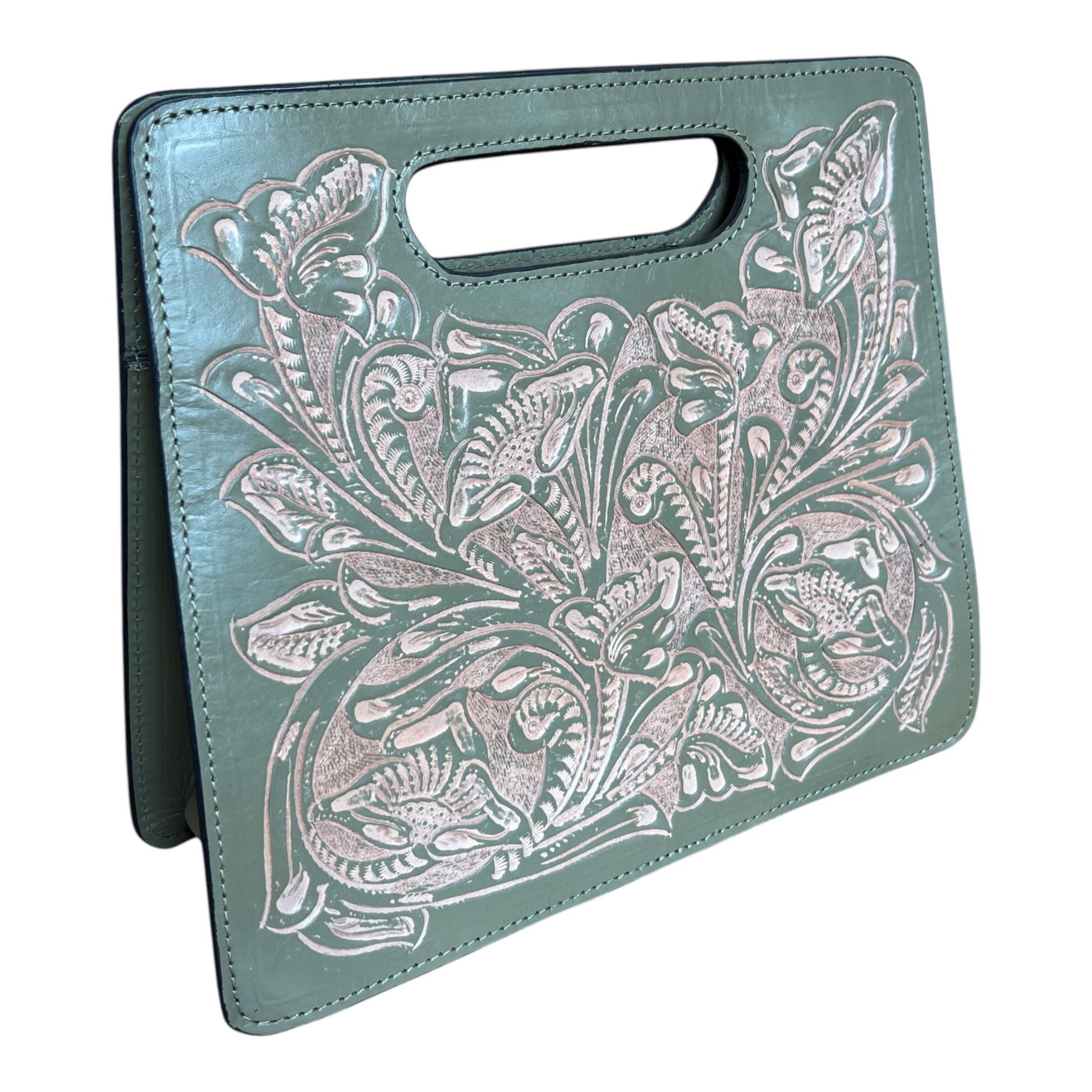Large handcrafted leather purse with top handle., Martina 12" x 10", Artisan crafted from Mexico. YEO1-012